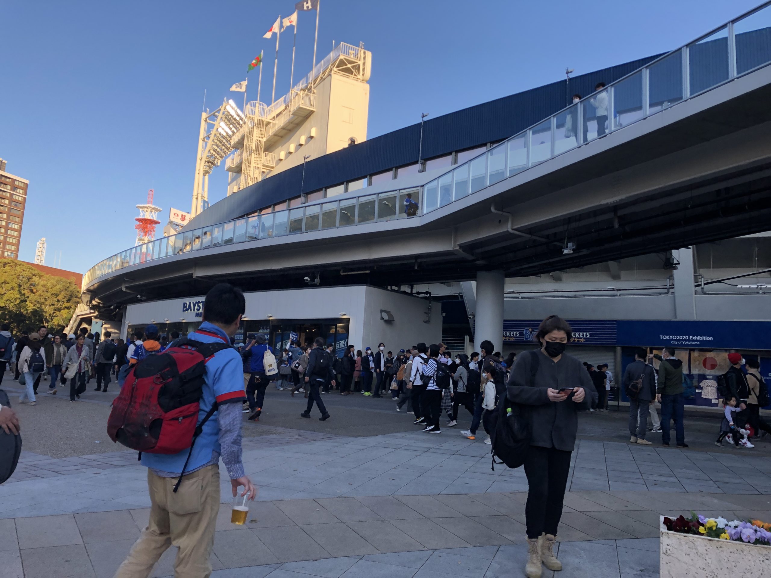 プロ野球開幕戦 横浜散歩 X Facebook はてブ LINE コピー 2024.03.292024.03.31 私の地元、関内周辺を歩いていたら、ベイスターズのレプリカユニフォームを着た人たちがたくさんいました。 そう、今日はプロ野球開幕の日でした。昼間では雨と強風がすごかったのですが、無事に晴れています。 イベント会場も騒がしくなっていました。 すごく盛り上がっていました。ベイスターズ、応援しています。