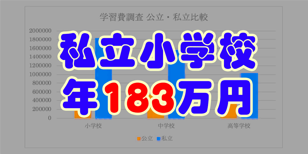 成長と共に費用が増えていくと思いきや、私立の学校と考えると、なぜか小学校が年180万円を超え、中高と進むにしたがって学習費が減ります。