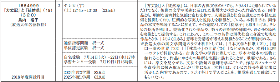 放送大学の「授業科目案内 2026 年度 第 1 学期」を読んでいたら、ビックリするような科目が出てきました。