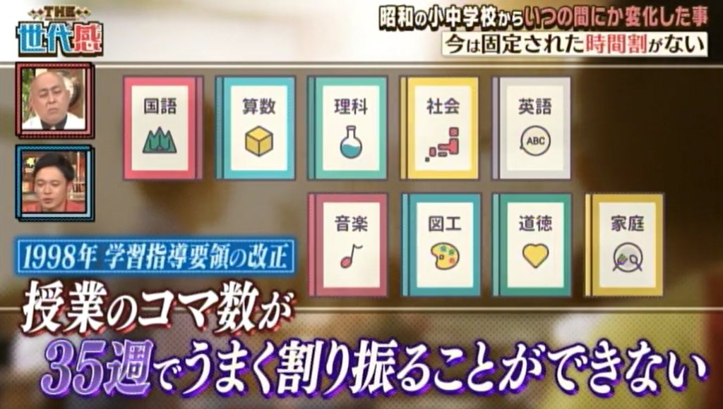 土曜日も登校していた頃の学校から、学校完全5日制に変わった1998年頃に、学校指導要領の変更がありました。